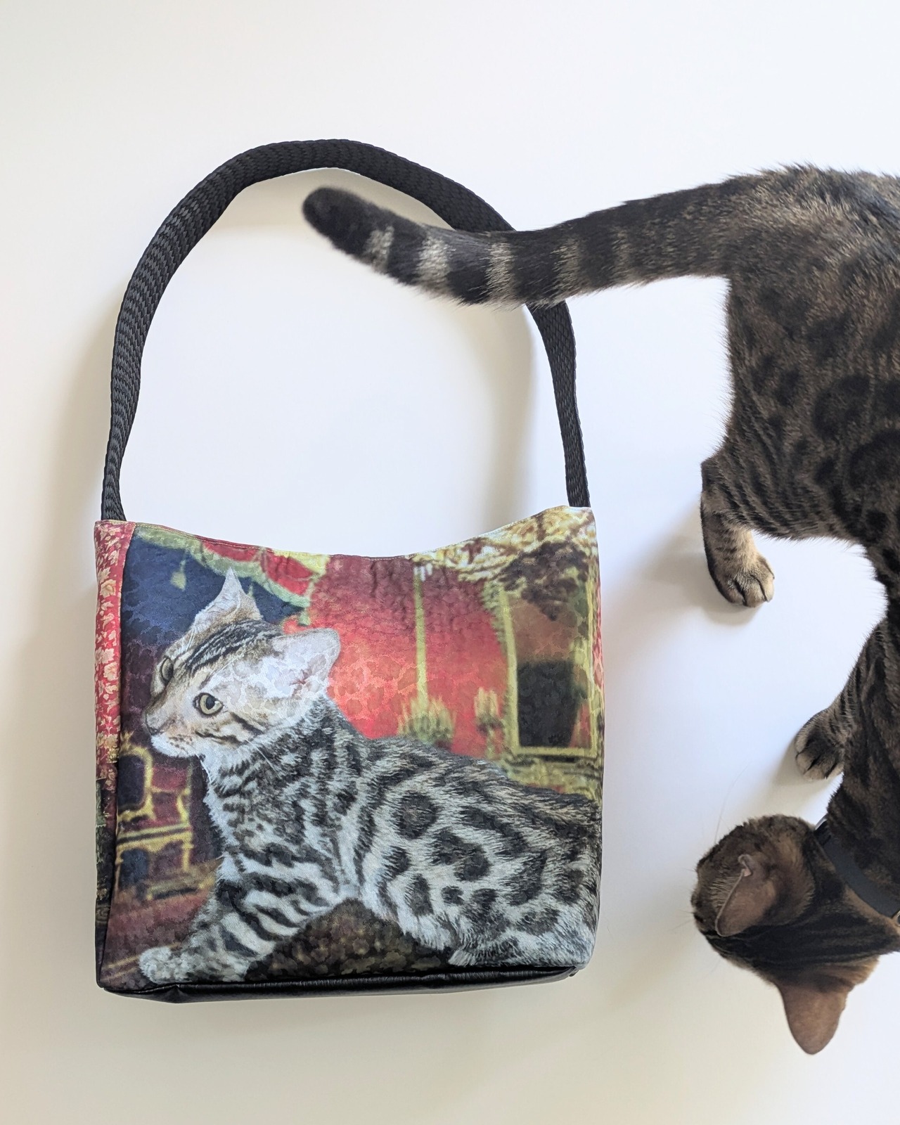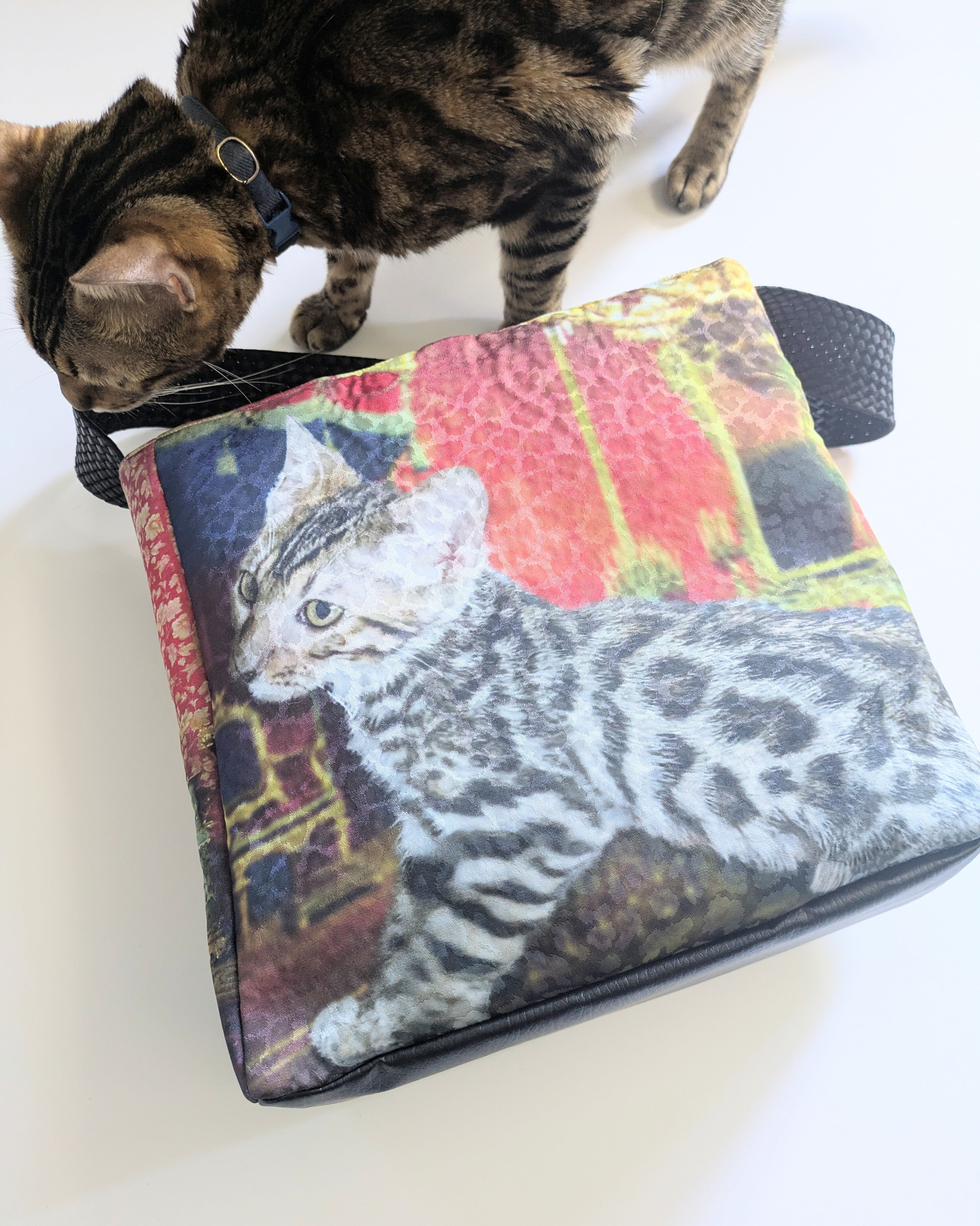 本体のサテン生地はレオパードのジャカードです。プリントすると立体感があり、油絵のような表情があります。